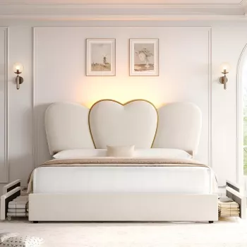 Queen Velvet Upholstered LED Bed Frame with 4 Drawers & Heart Shaped Headboard